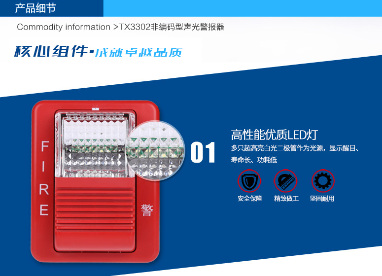 TX3302聲光警報器(以下簡稱聲光警報器),是一種安裝在現(xiàn)場的聲光報警設備。采用高亮度的LED光源,聲光警報器啟動后發(fā)出強烈的聲光報警信號,以達到提醒現(xiàn)場人員注意的目的。