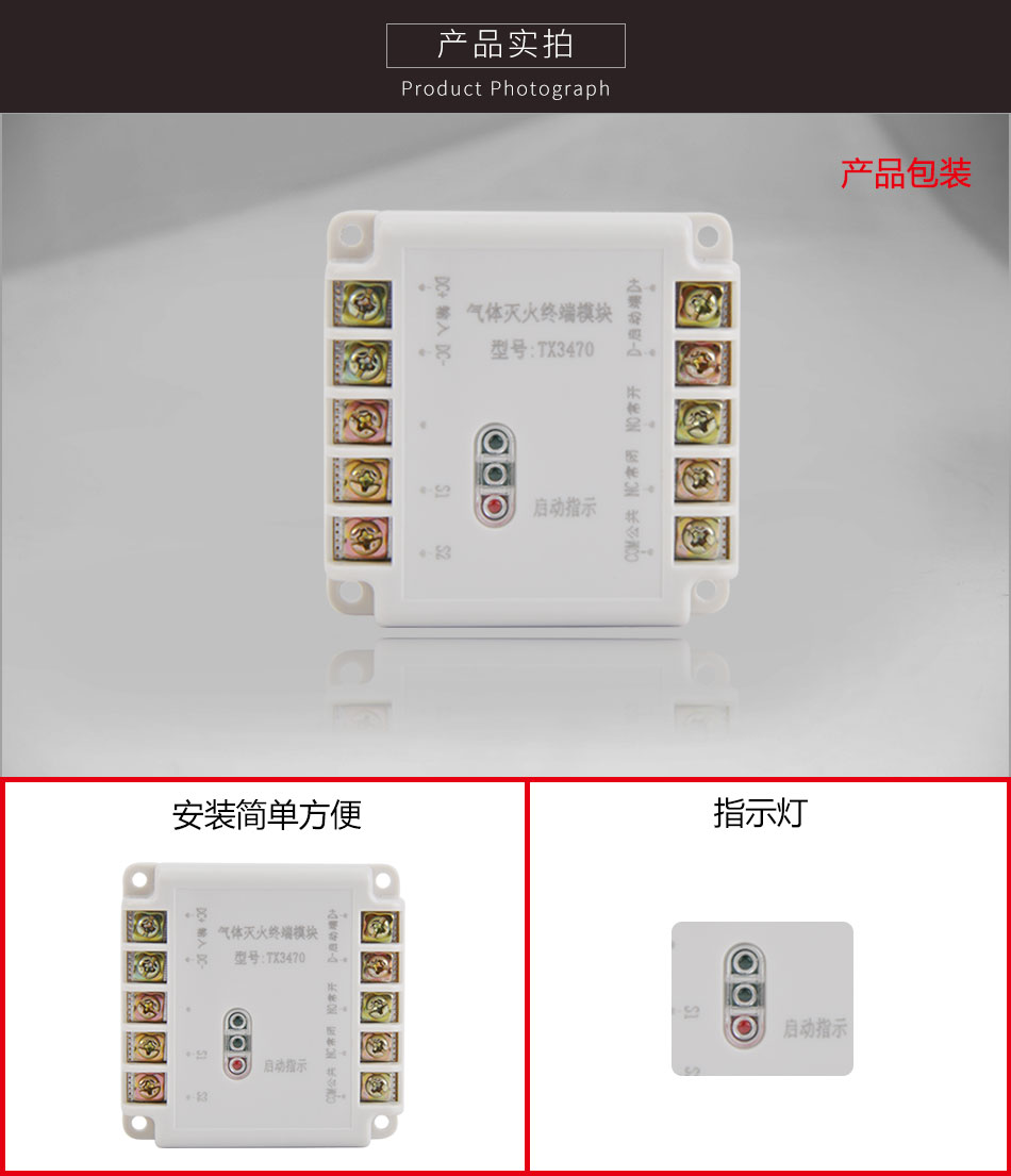 TX3470氣體滅火終端模塊用于在氣體滅火控制裝置系統(tǒng)中控制放氣電磁閥,完成滅火氣體噴灑。