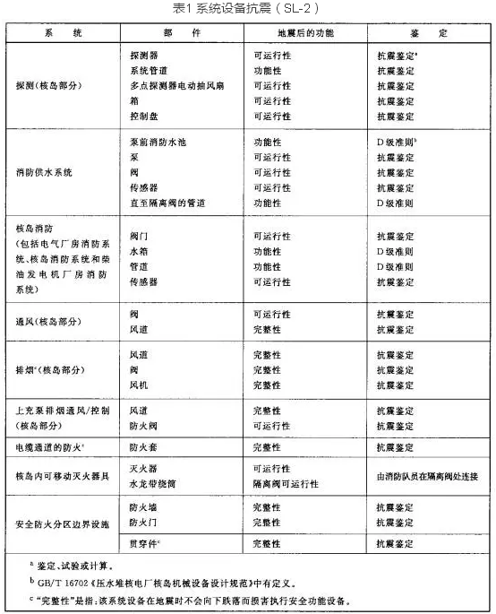 核電廠的火災(zāi)自動報警系統(tǒng)需滿足相關(guān)質(zhì)保等級的要求并且系統(tǒng)在運行階段要接受定期試驗檢查,另外,所有設(shè)備應(yīng)經(jīng)過抗震試驗鑒定并能承受極限安全地震(SL-2)荷載,且保證其可運行性(見下表1)。