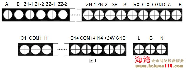 A、B:連接火災(zāi)顯示盤的通訊總線端子;