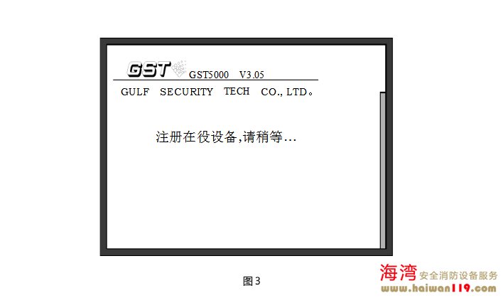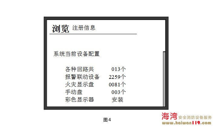 完成以上操作后,系統(tǒng)上電進(jìn)行初始化(畫面顯示如圖1所示)。初始化完成后進(jìn)入對運(yùn)行記錄、隔離信息、聯(lián)動公式、聲光電源的自動檢查狀態(tài)(畫面顯示如圖2所示),自檢完畢,控制器對外接火災(zāi)顯示盤、探測器和模塊進(jìn)行注冊(如圖3所示),并顯示注冊信息 (如圖4所示) 。至此,開機(jī)過程結(jié)束,系統(tǒng)進(jìn)入正常監(jiān)控狀態(tài)。主機(jī)鍵盤上設(shè)有“自檢”鍵,按下此鍵后系統(tǒng)將進(jìn)行和開機(jī)時(shí)相同的聲光及電源檢查。 關(guān)機(jī)過程按照與開機(jī)時(shí)相反的順序關(guān)掉各開關(guān)即可。要注意各個(gè)備電開關(guān)一定要關(guān)掉,否則,將有損壞電池的可能。