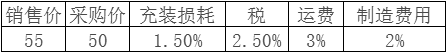 那么,我們真的沒有一個相對簡單容易操作的辦法來大致分辨產(chǎn)品質(zhì)量嗎?我認(rèn)為是有的,拿藥劑來說吧,如果藥劑廠商出廠價假設(shè)是50元每公斤,設(shè)備廠家銷售價格是55每公斤,那么藥劑可能是真藥劑且按設(shè)計要求充裝嗎?作為專業(yè)人士我給大家作個簡單計算,見下表